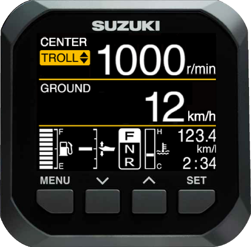 Seasoned top-water anglers and Suzuki outboard owners agree that Troll mode is one of the most important features introduced to the SMG4 gauge. Finding that trolling sweet spot can often be the key to success when pulling lures. Now it’s even easier to make precise incremental adjustments to engine RPM and boat speed at the touch of a button.